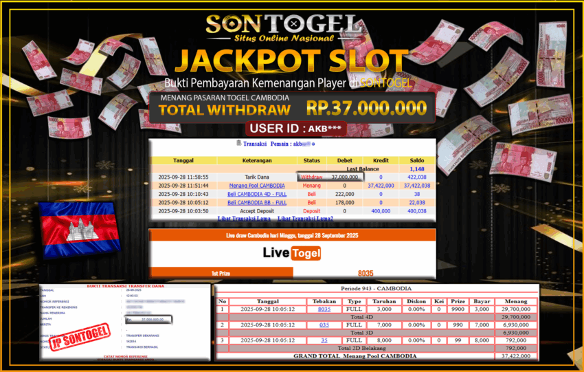 Berikut ini adalah BUKTI JP SONTOGEL yang sudah diproseskan ke rekening member kami