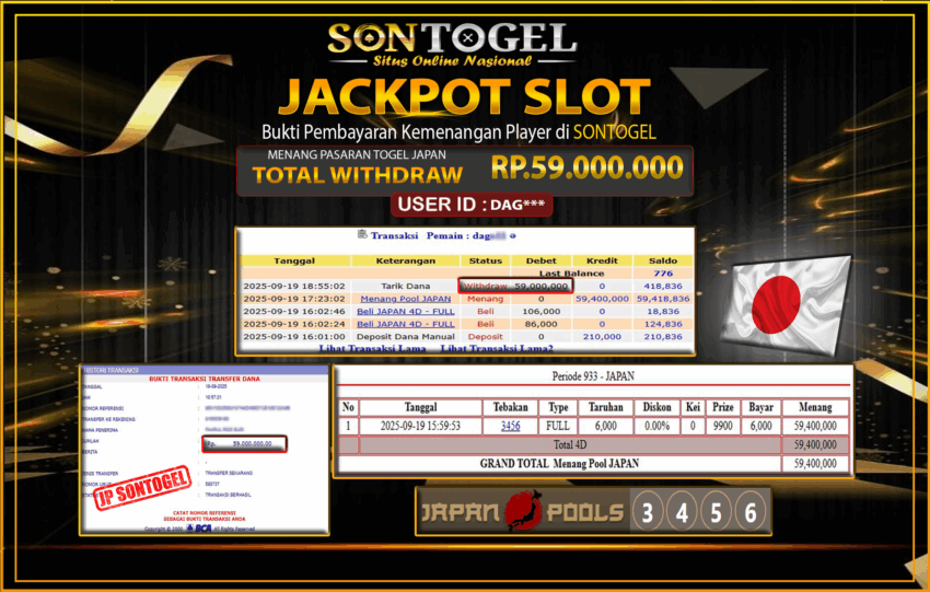 Selamat Kepada Member SONTOGEL dengan USER ID : DAG*** PASARAN TOGEL JAPAN sebesar RP.59.000.000,- LUNAS langsung di transfer ke rekening member tanpa kurang sepeserpun. Terimakasih telah mempercayakan SONTOGEL sebagai Situs Online Terpercaya dan Aman! Jangan tunggu tunggu lagi! langsung saja daftarkan akun bermain di SONTOGEL dan dapatkan bonus berlimpah setiap minggunya.